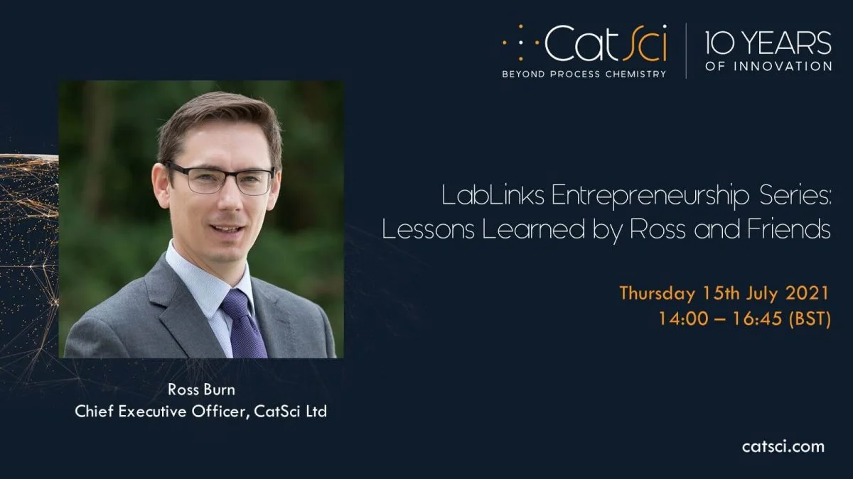 CatSci is delighted to announce that our CEO, Dr Ross Burn, will be hosting the inaugural event of his Entrepreneurship Series: Lessons Learned by Ross and Friends on LabLinks on 15th July 2021.