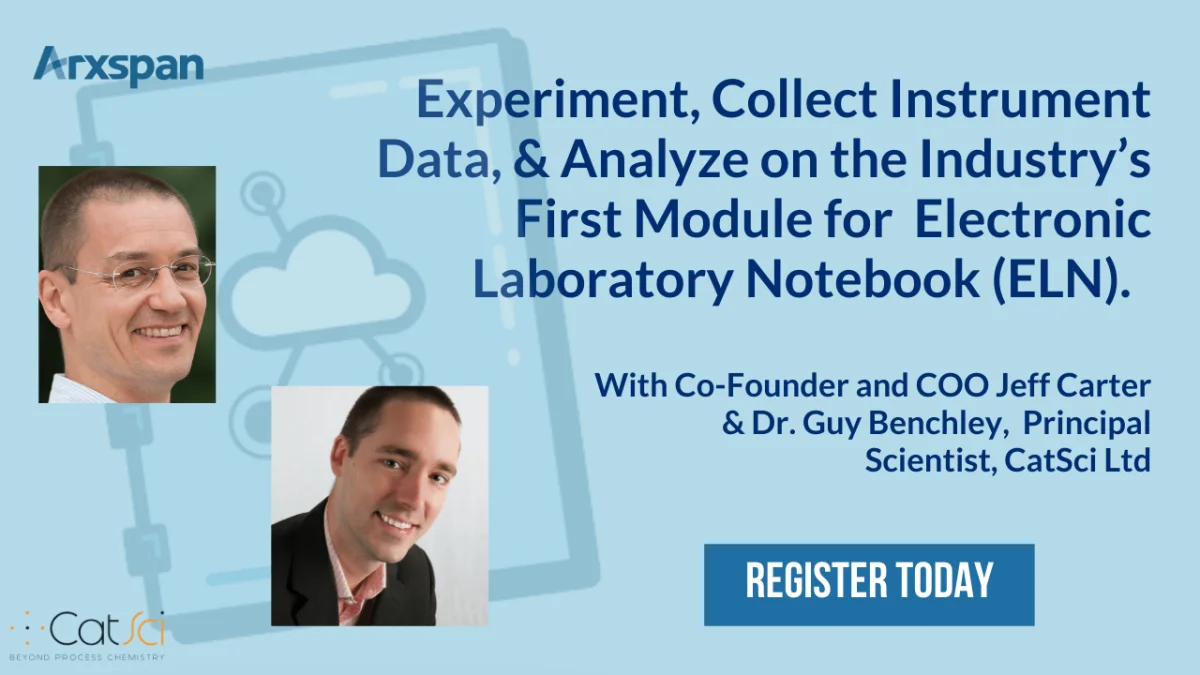 CatSci are delighted to be participating in this webinar with Arxspan to talk about their Electronic Laboratory Notebook (ELN), designed specifically for use with analytical instruments such as NMR and mass spec enabling general data manipulation and reprocessing at the chemist’s desk. Dr Guy Brenchley, Principal Scientist at CatSci, will be discussing how CatSci uses this tool to automate data processes and tie R&D activities to Quality Control, with co-founder and COO of Arxspan, Jeff Carter.