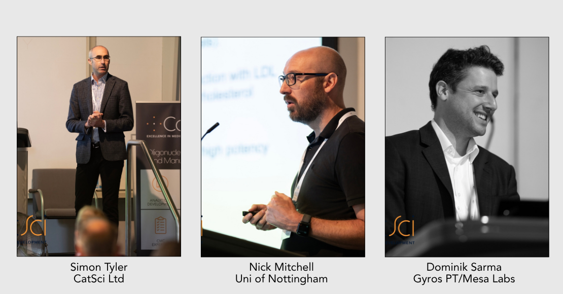 CatSci’s own Cameron Thorpe followed, providing a momentary break from peptides with an overview of the Oligonucleotide capabilities offered by our laboratory in Cardiff. His talk also highlighted the talent to be found in their group, before he went on to describe some recent collaborative work on peptide/oligonucleotide conjugated molecules.