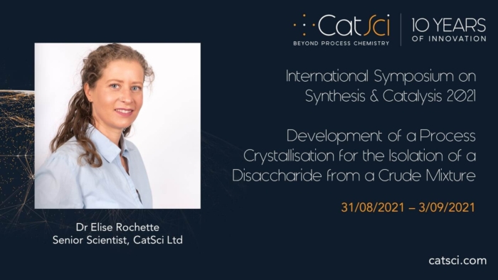 CatSci is delighted to announce that our Senior Scientist, Dr Elise Rochette, will be presenting a poster at the 4 day International Symposium on Synthesis and Catalysis 2021 (ISySyCat2021).